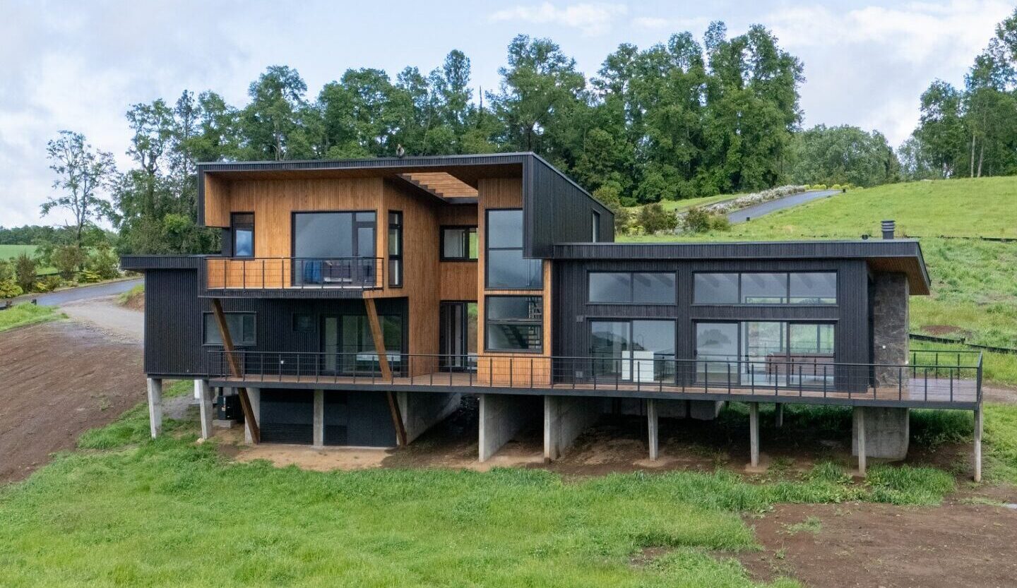 Casa C-S, ubicada en la cuenca norte-poniente del Lago Panguipulli, se integra perfectamente al majestuoso paisaje que la rodea.