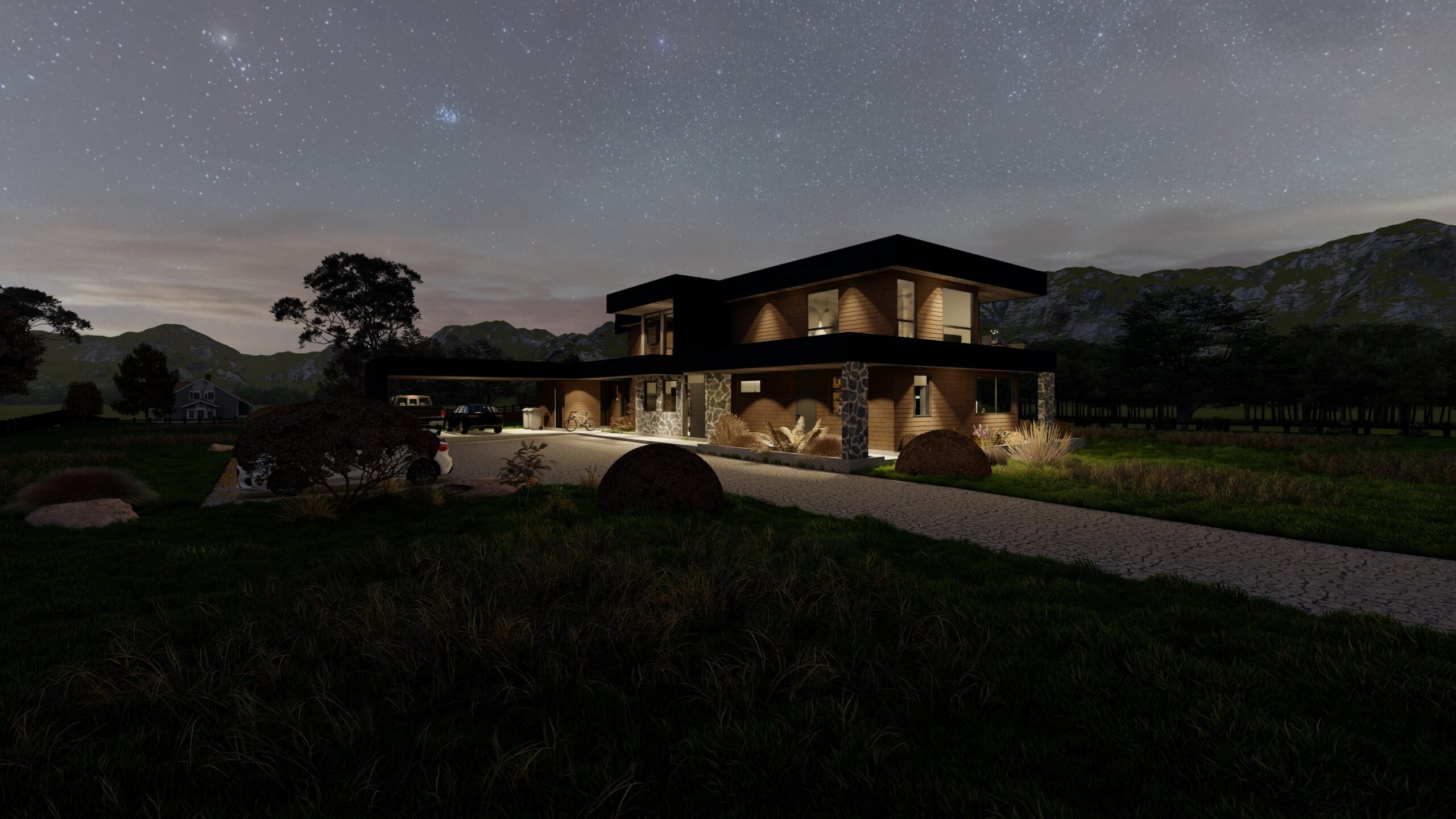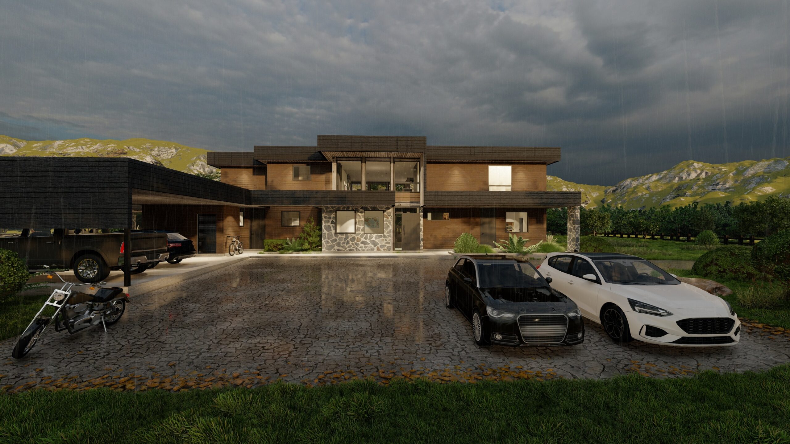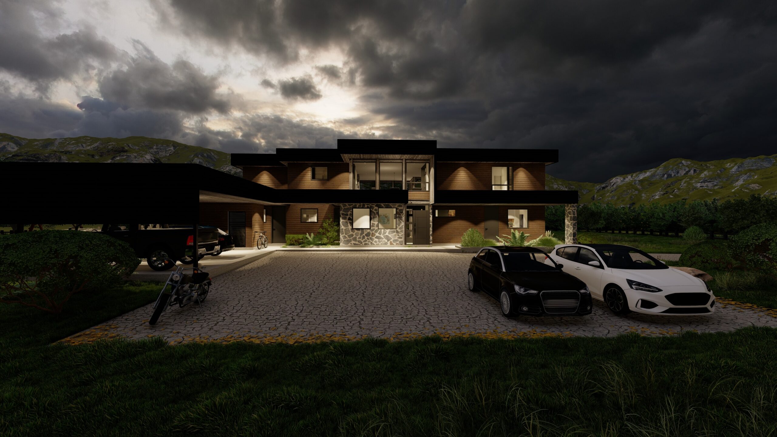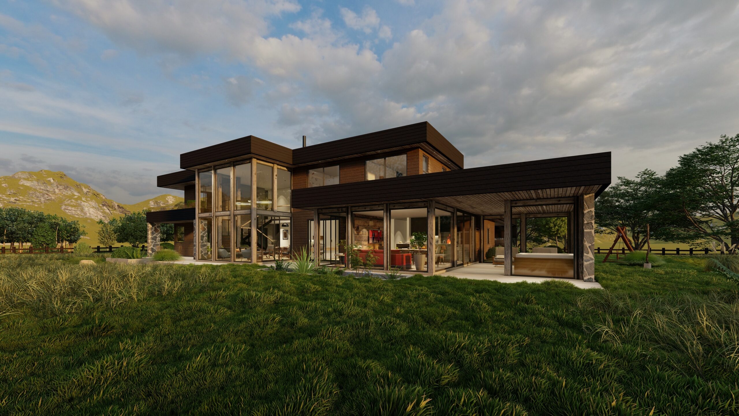 Lomas Verdes: Ubicada entre los suaves y verdes lomajes característicos del sur de Chile, el proyecto se distingue por su arquitectura mediterránea que rompe con lo clásico de la zona. Su diseño combina modernidad y carácter, integrándose de manera única al paisaje mientras aporta un sello de valor y distinción.