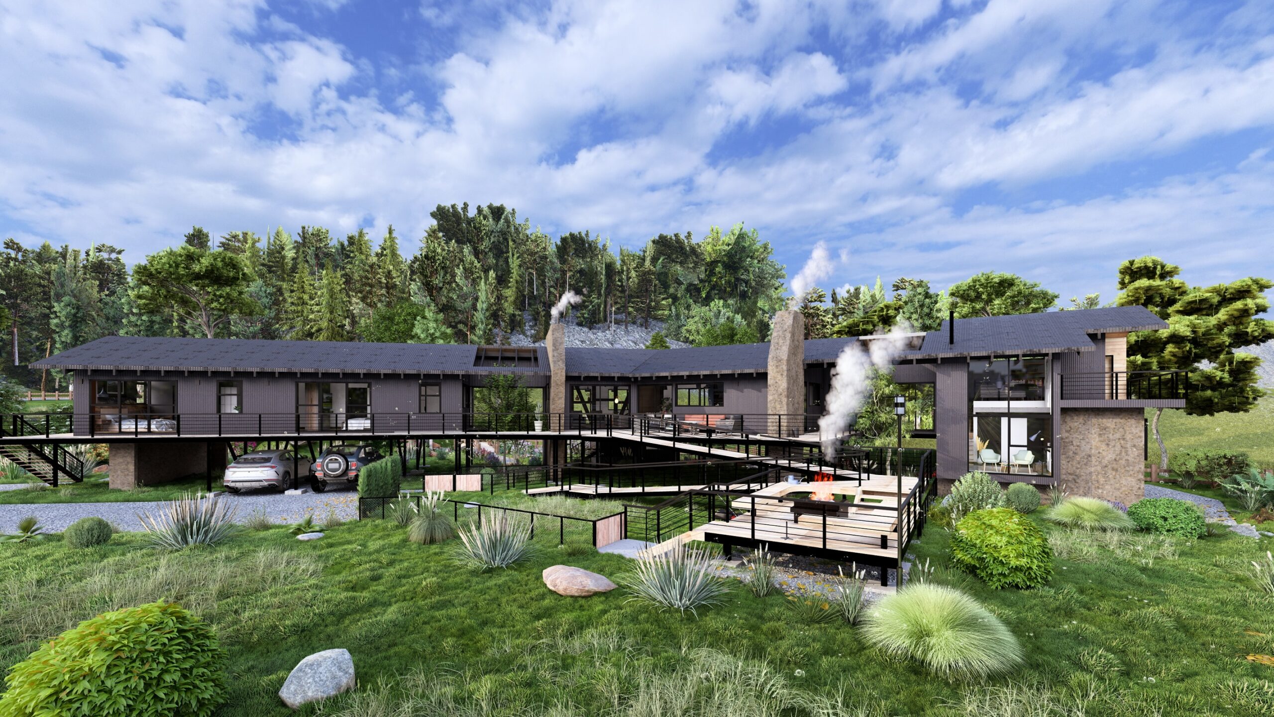 Ubicada en la comuna de Curarrehue, la Casa F-L se presenta como un hito arquitectónico donde toda la vida ocurre en el segundo piso. Esta configuración responde a la necesidad de capturar vistas privilegiadas y adaptarse a un estilo de vida único, además de proteger la vivienda frente a la proximidad de un río con antecedentes de crecidas, situado a menos de 50 metros.