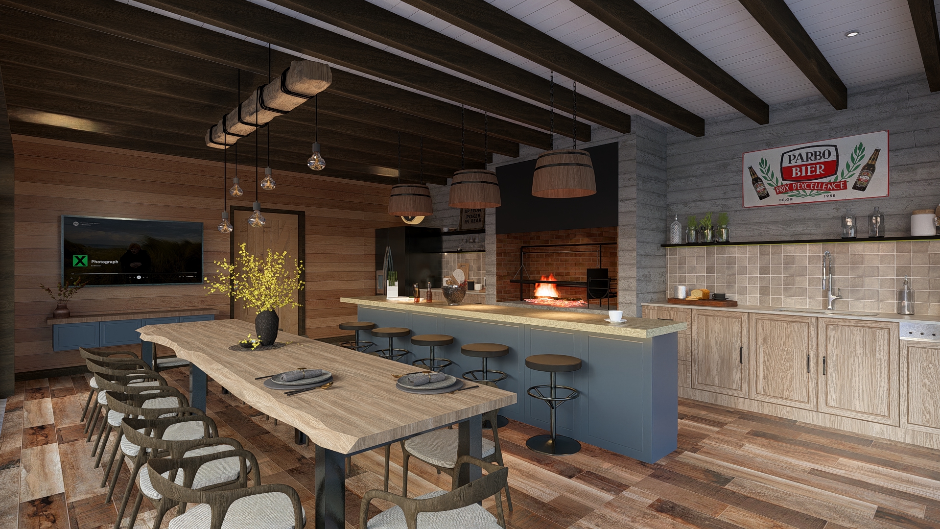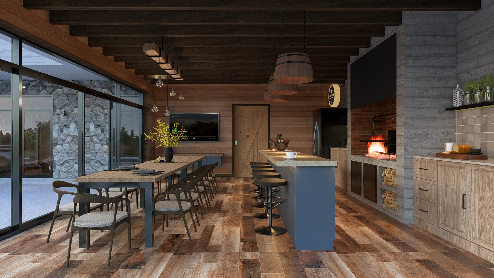 El interiorismo combina la esencia rústica de la zona con toques de modernidad en elementos como el mobiliario y la cocina, logrando un equilibrio perfecto entre tradición y diseño contemporáneo. Detalles únicos como una cava subterránea, patios interiores y un quincho diseñado cuidadosamente aportan un carácter distintivo, convirtiendo a la Casa H-A en un hogar funcional y con identidad propia.