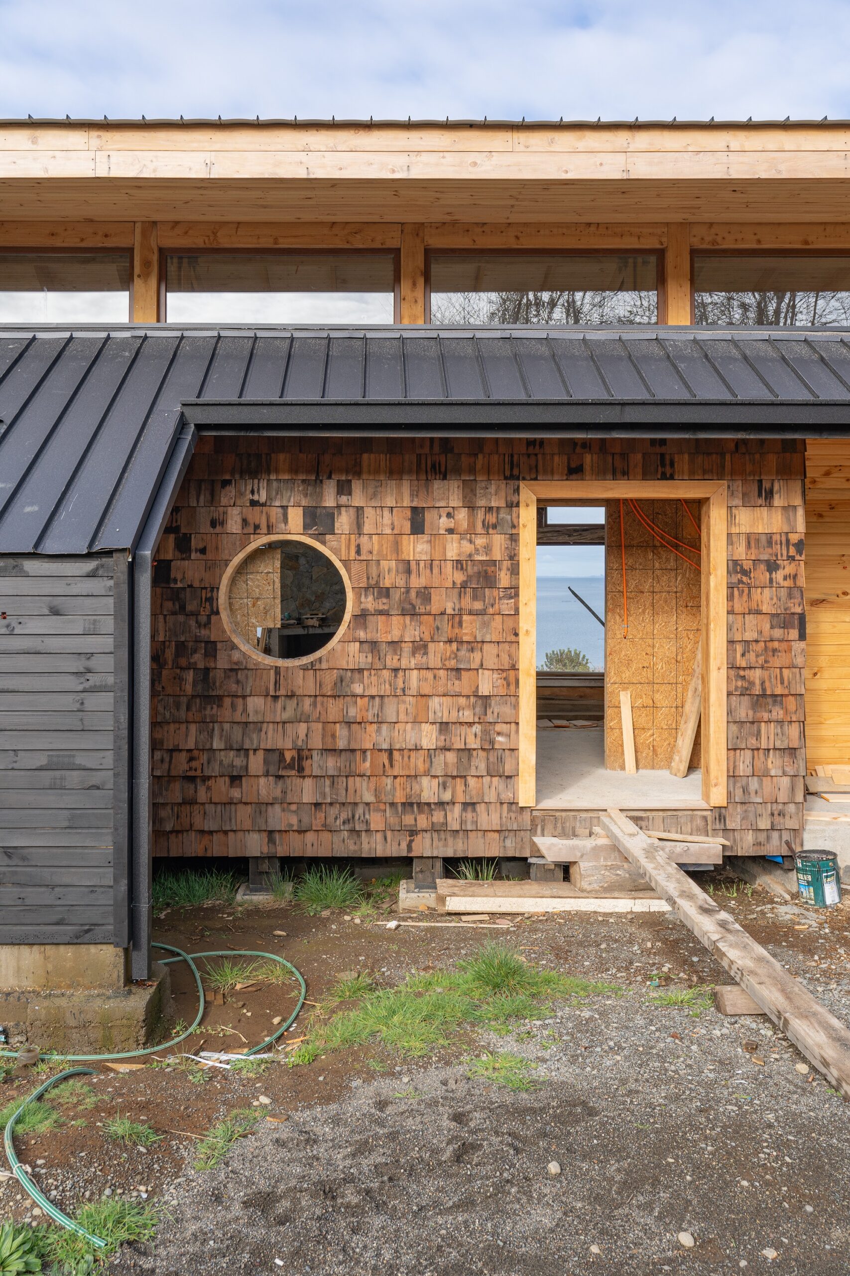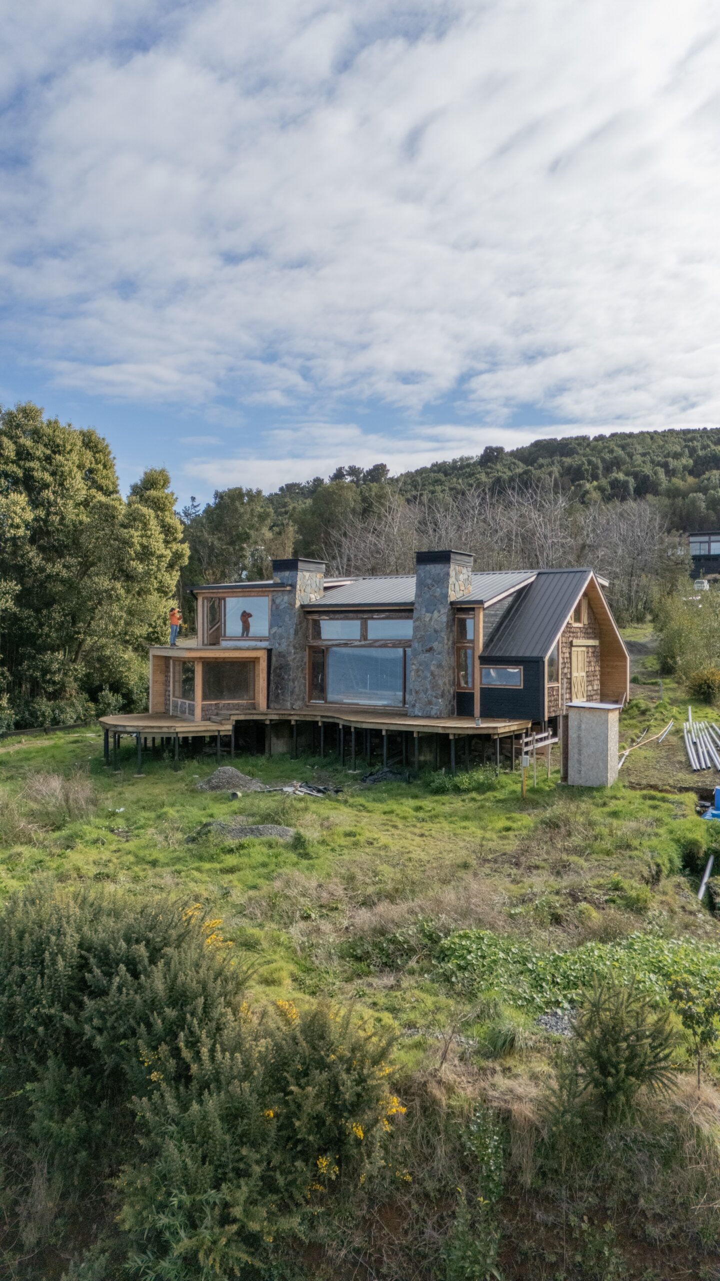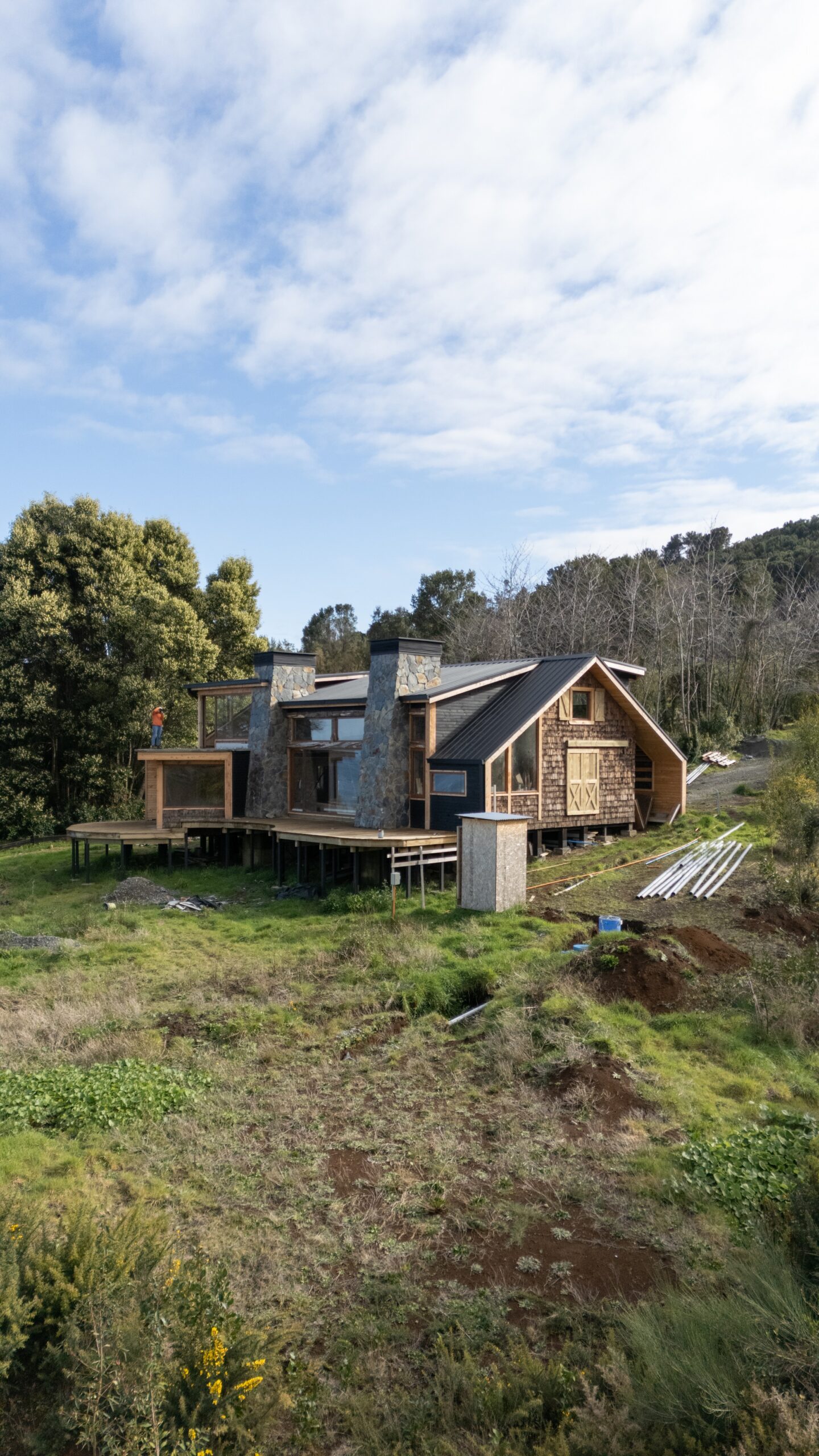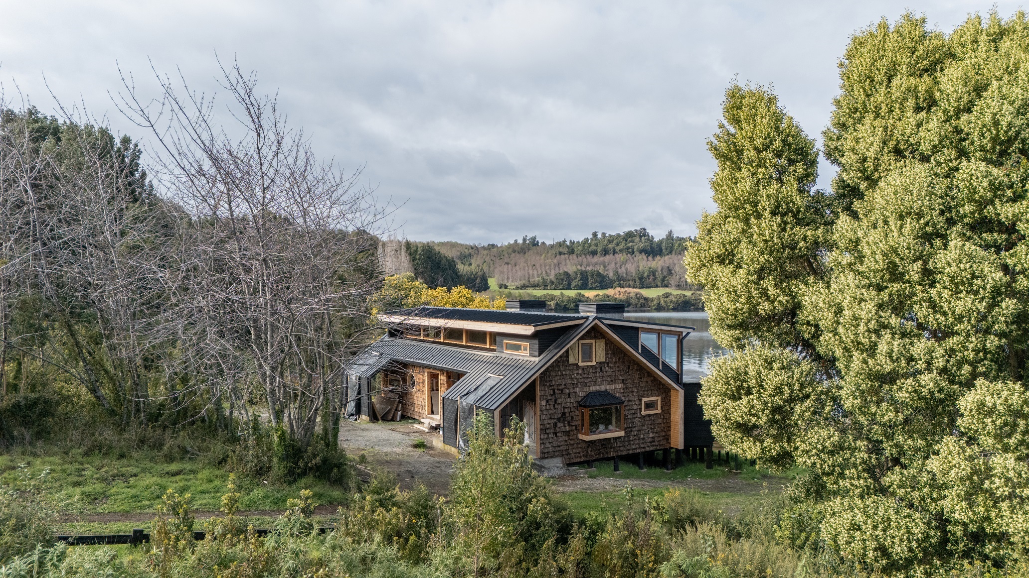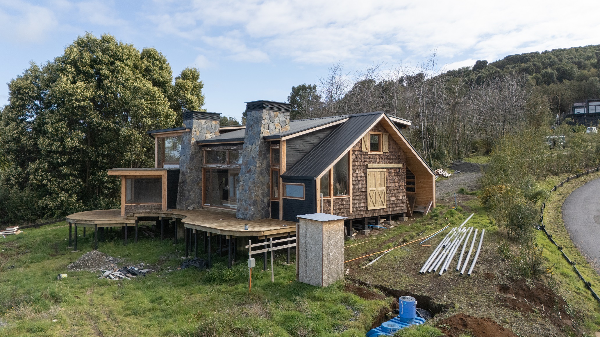La Casa M-V, ubicada en la primera línea del lago Llanquihue, es un refugio sureño diseñado para desconectarse del bullicio de la vida urbana. Inspirada en los galpones tradicionales de la región, la vivienda combina un diseño rústico con toques contemporáneos, destacando el uso de tejas de alerce reciclado en sus fachadas y maderas robustas en los interiores.