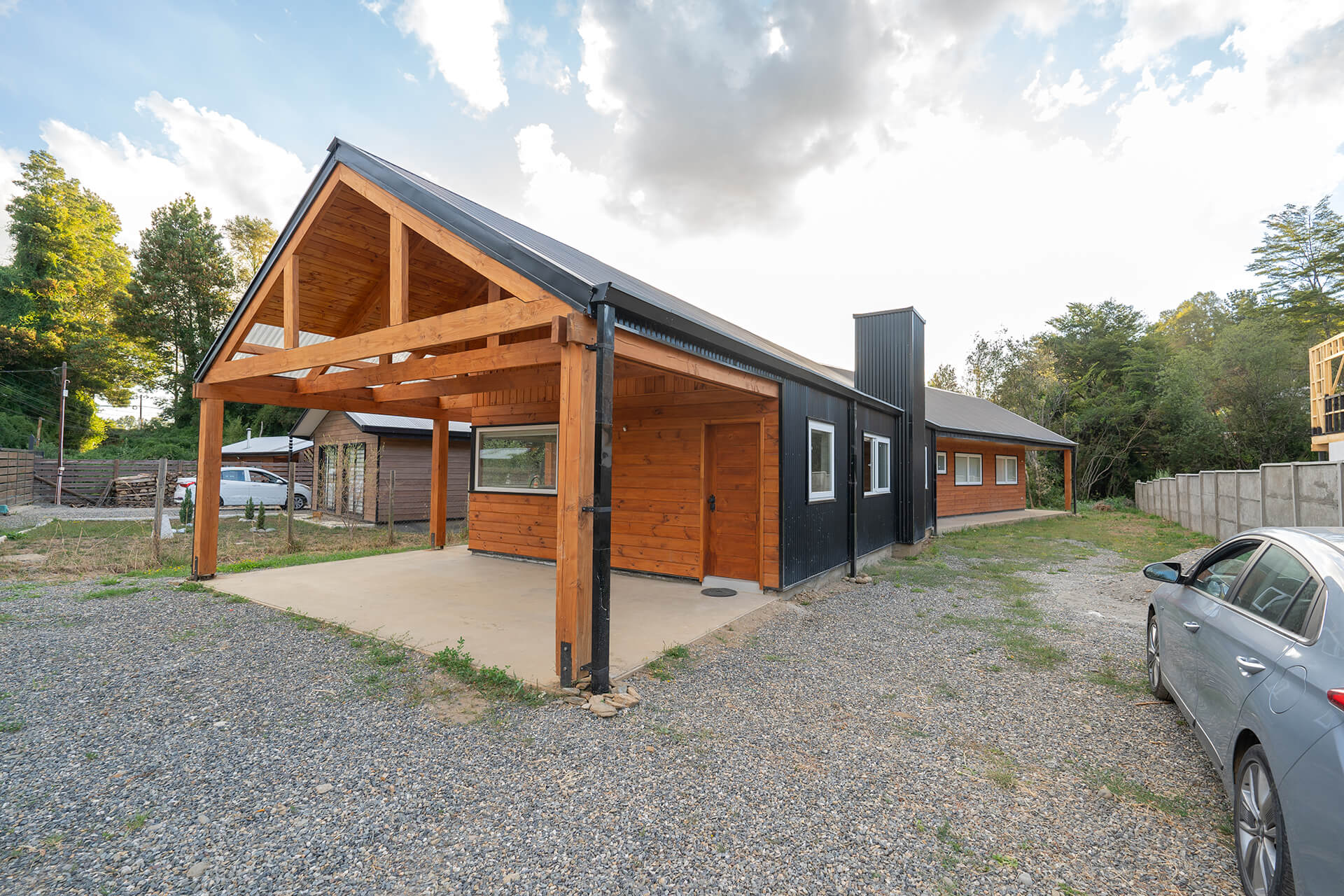 La Casa Q-C, ubicada en las afueras de Valdivia, adopta una estética de galpón a lo largo de toda su extensión, destacando una geometría limpia.