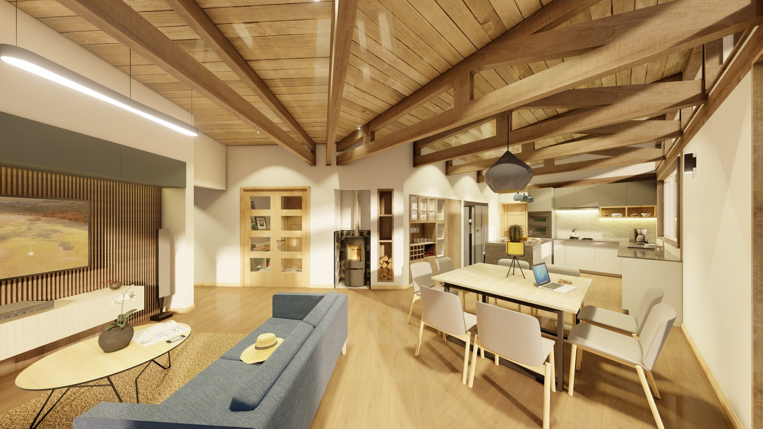 La Madera: El diseño de la casa R-D convierte la madera en protagonista, fusionando estructura y arquitectura para lograr un resultado que destaca tanto en su fachada como en sus espacios interiores.