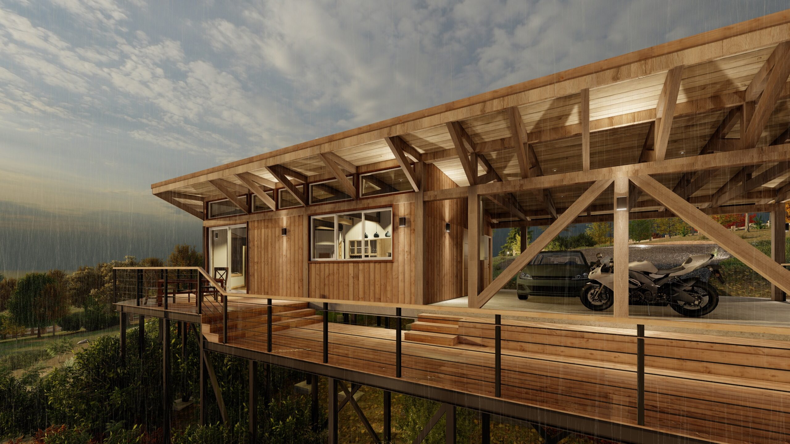 Ubicada en los campos de las afueras de Valdivia, la vivienda R-D combina estructura y arquitectura en un diseño de alto valor conceptual. El proyecto se planteó para abrazar la colina, adaptándose a las curvas de nivel de la parcela y logrando una integración natural y fluida con su entorno.